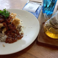 “ The best Chicken Truffle Rice I have ever tried, absolutely 5/5 . The flavor was creamy and very tasty, and the portion was not too small; it is very suitable for me! In addition, I also ordered pepperoni pizza. It was OK, they could add more cheese to make it richer in flavor (but that's only my opinion, as I'm someone who likes cheese ). I rate it 4/5 for the pizza. The tea was superb. There were various choices for artisan tea, and the smell and taste were really good. Additionally, you can ask for a refill three times because there is still flavor left in the tea leaves. I rate it 5/5 for the tea! The ambiance was very cozy, and the parking space was very spacious, making it very suitable if you are meeting with many people or want to bring your family, as the parking space can cater to the needs Overall, I rate it 5/5. Good place, good staff, good food! ”
